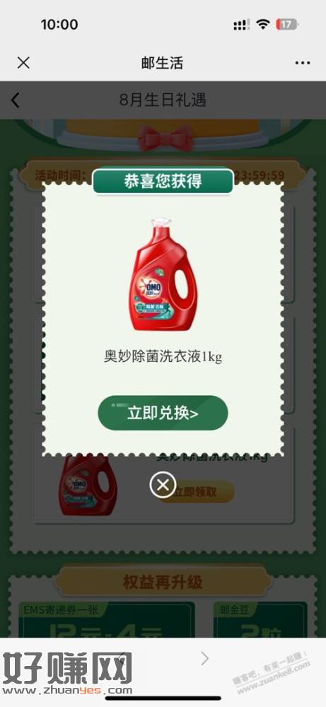 邮生活八月生日的可以领东西了