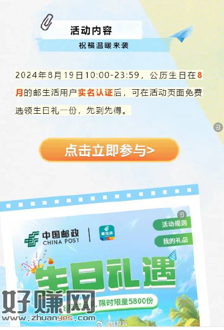 10点邮生活,本月生日可领生日礼