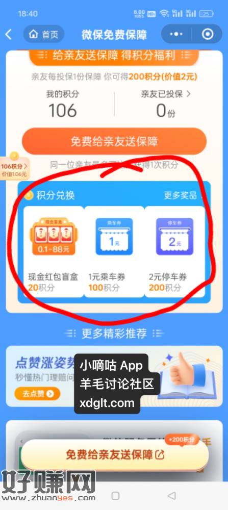 老羊毛了,腾讯微保积分兑换现金,打开微信钱包下面保险服务- 点我的- 下拉到底免费保障- 下拉到底积分兑换- 有的会出一个任务完成4个任务100积分就可以兑换1元红包,很简单,多余积分也可抢红包
