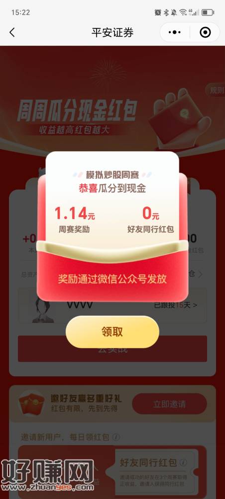 【平安证券】您上周参与的模拟炒股周赛红包已到账,请及时领取 :