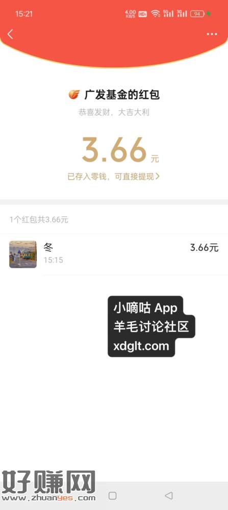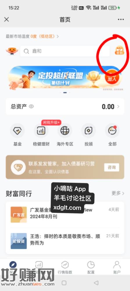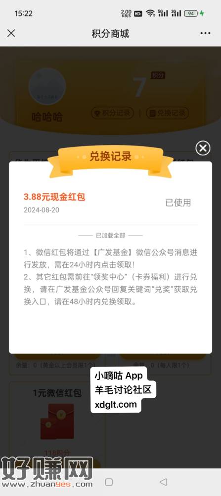 广发基金微信公众号,签到积分兑红包,完成风险评测也给红包,好