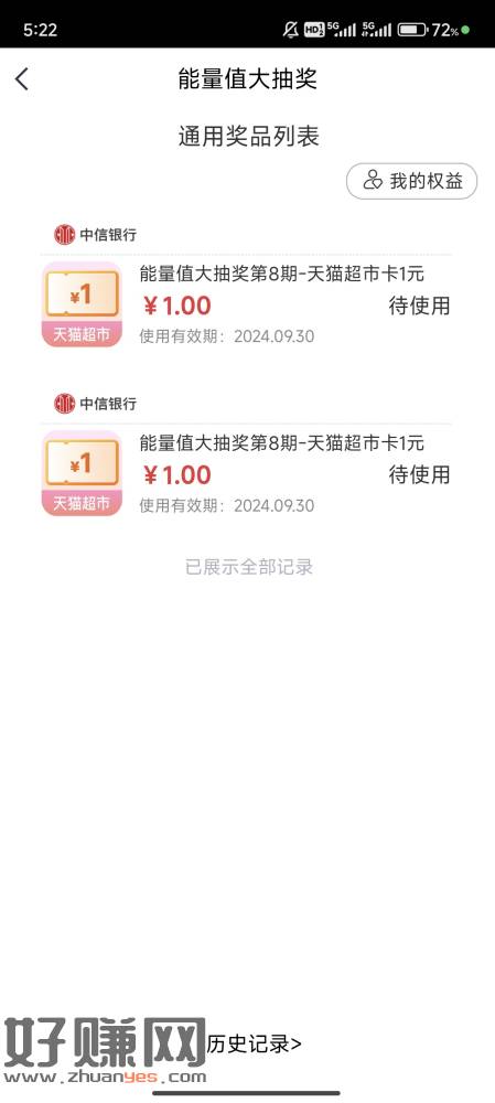 可以抽奖,我中俩猫卡
