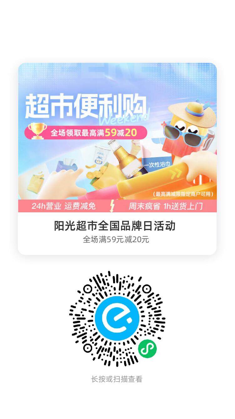 饿了么上海地区,每日可领阳光超市69-20,10-5