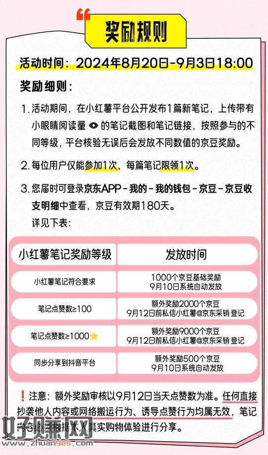 小红书发布第二期,规则见图一。发布小红书最低奖励1000京豆,相当于10元,同步至抖音,可在得500京豆,相当于5元。