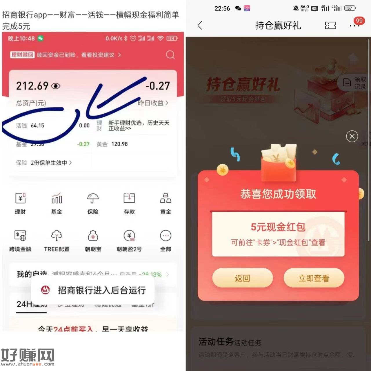 招行5 看看点下眼睛,就会出现活钱两个字