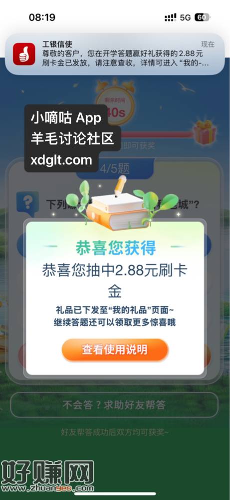 7点e生活微信小程序 轮播广告 答题赢刷卡金2.88