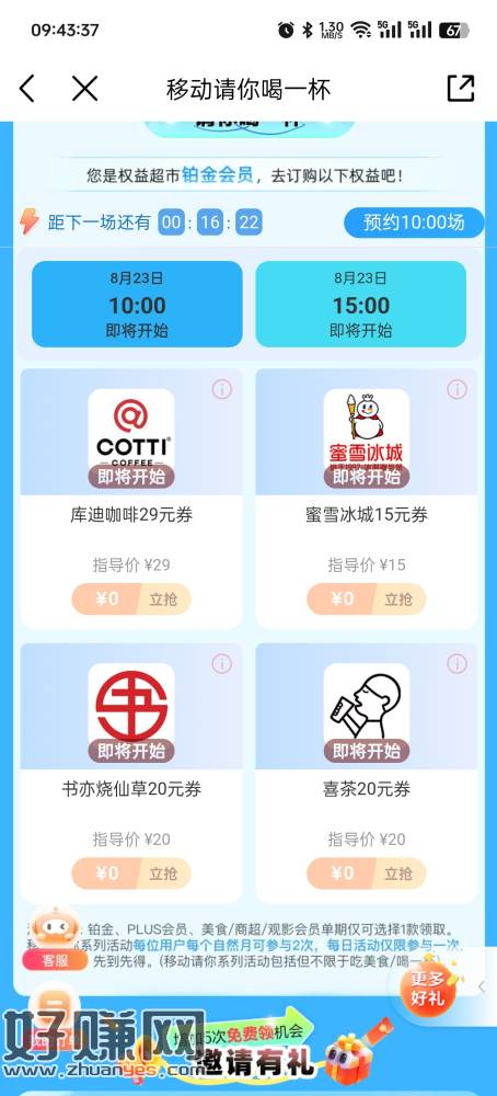 10点 移动铂金 领奶茶券 选书亦 10润