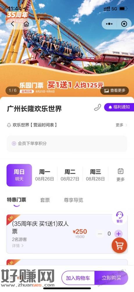 广州长隆欢乐世界门票买一送一