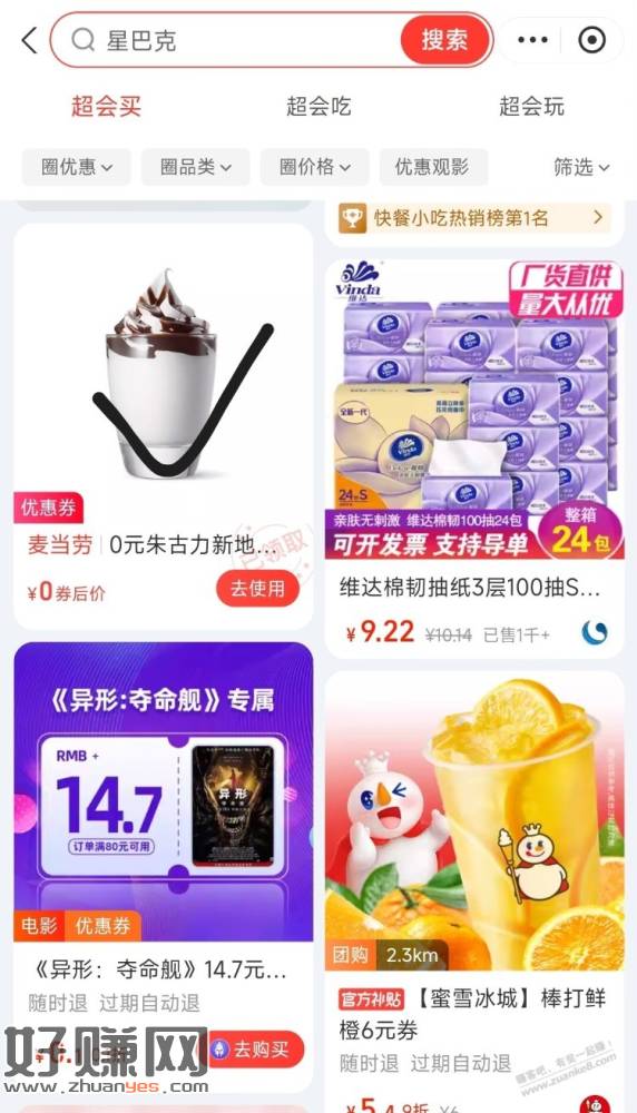 zfb 搜: 消 费 圈 页面下拉多个麦当劳0亓 满10亓可用