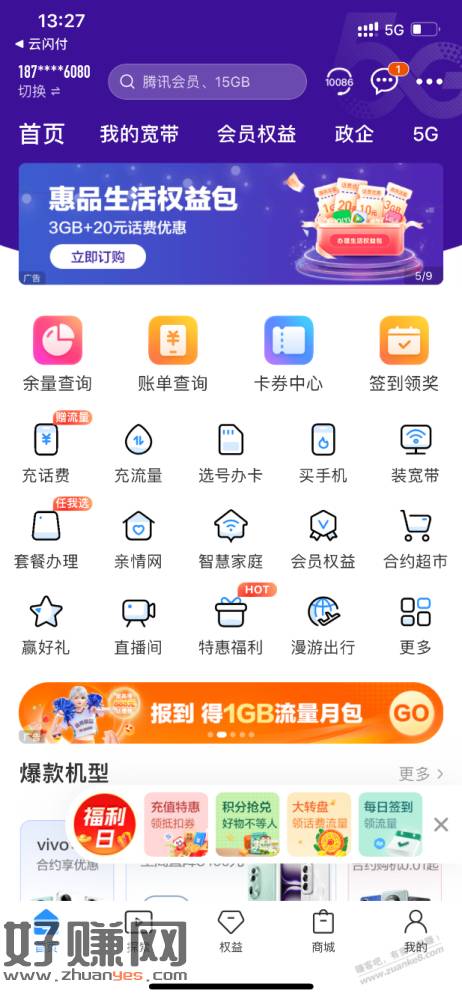 中国移动app,中间横幅,1g流量那个,浏览6个任务完成拼图,最低50减10话费券,我本来是想要流量的,没想到有惊喜