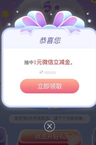 【建行每月抽1~88元微信立减金】新一期!微信进入#小程序:CCB建融家园平台 ->惠消费开好礼->直接抽微信立减金->跳转到建行小程序领取秒到