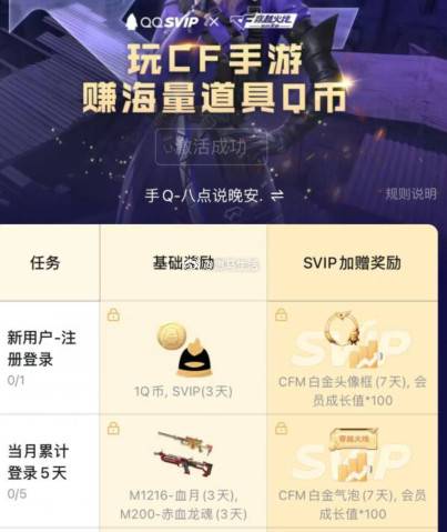 【穿越火线手游新用户领取1Q币】QQ打开活动->下载登陆游戏->返回页面领1Q币+3天QQ超级会员
