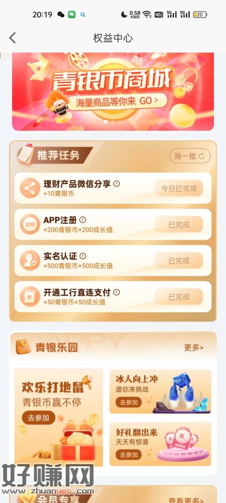 每个人50大毛,青银理财app,会员权益简单完成任务,玩点小