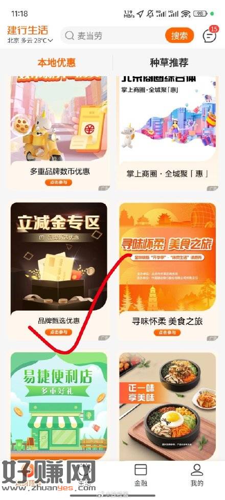 北京地区 建行生活首页下拉可领部分品牌立减金