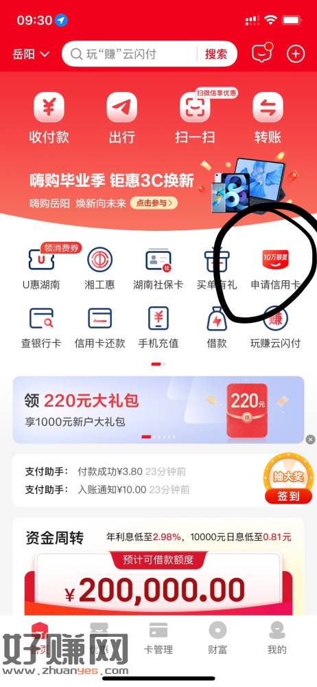 征信黑户上,首页-申请信用卡,每次给6.2,10天毕业,没通过审核也给。