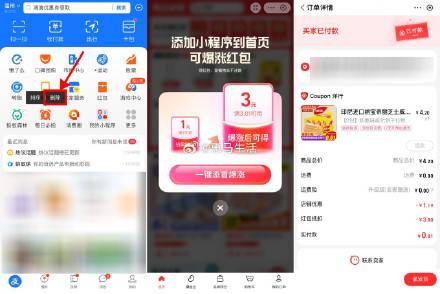 【支付宝每日必抢0.01亓撸实物】支付宝app首页有“每日必抢”的别点进去,直接长按删除->支付宝搜索“每日必抢”进入弹暴涨红包3亓,最低可0.01亓撸实物包邮