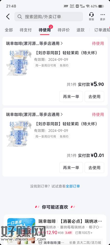 有抖音的可以点设置,切换账号,创建新账号,然后用当前号创建一个新号,搜索轻轻茉莉,找特大杯的,基本上都是0.01,不要购买,去闲鱼出,7-8很多收的,1号可以买两张