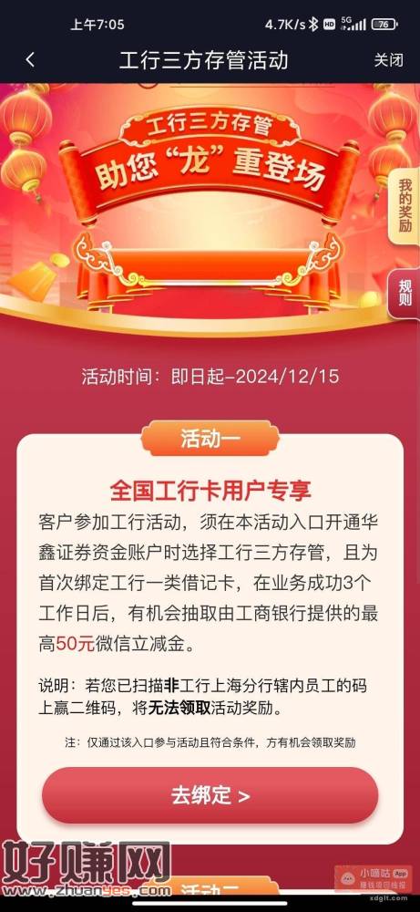 星途starway工行三方存管助你龙重登场活动,开户有工行一类即可,第三天抽的,没发短信,今天刚才抽的,活动还有没结束