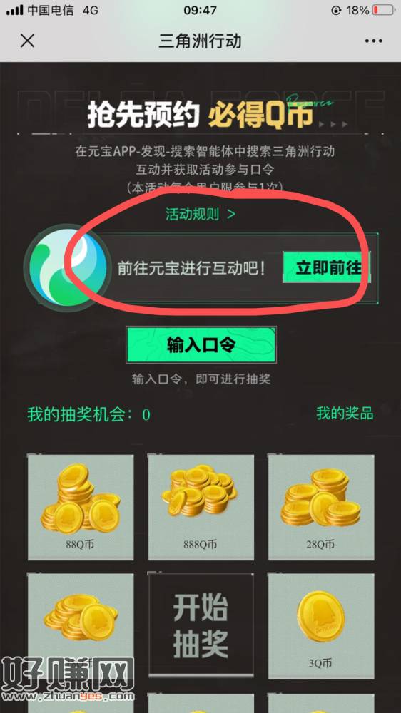 预约,看图去获得口令,点立即前往回复口令,获得口令了,然后抽