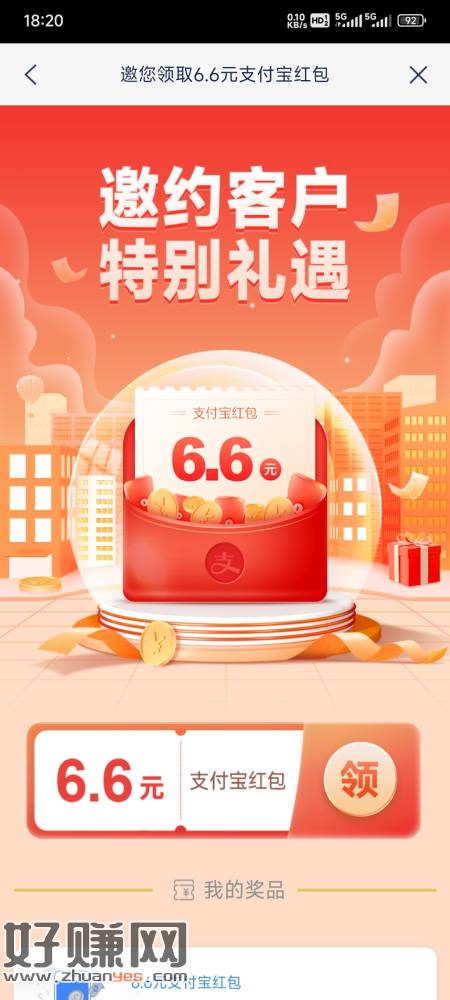【浦发银行】恭喜您获得领取6.6元支付宝红包资格!8月底前点