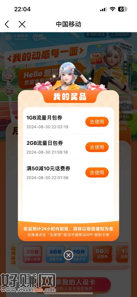 中国移动搜动感人设 人人50-10➕流量劵