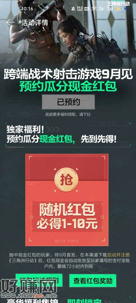 OPPO游戏中心 三角洲行动 预约抽红包刚中2