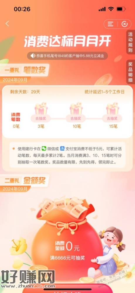 铁子们,建行消费达标又有了