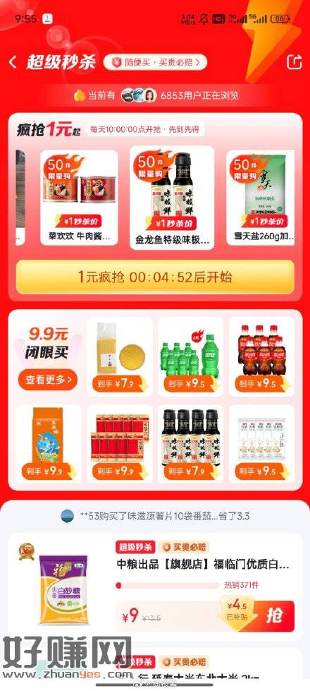 10点,翼支付App首页超级秒杀有一元