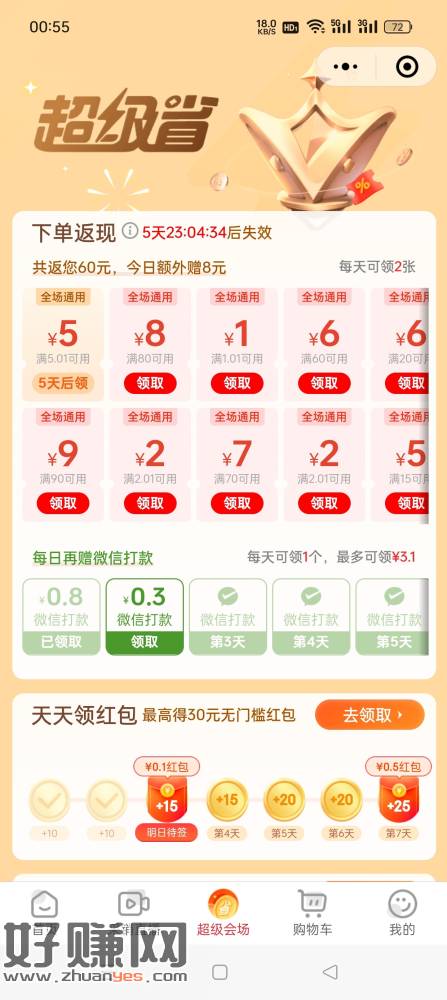 微信发现,进购物页面,进去看看出不出1分钱购买的界面,会有下面图那两种,都可以薅实物