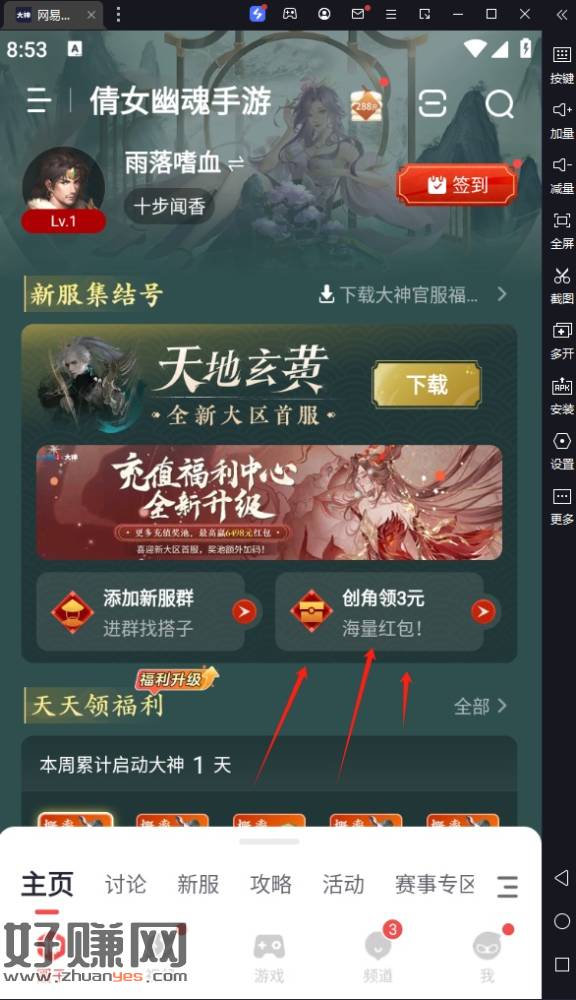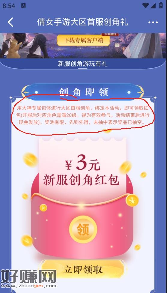 网易大神app 左上角切倩女幽魂圈子 新区天地玄黄区建号,规则说是玩到20级,但是不用20级也可以领取,但是后期会不会到不清楚