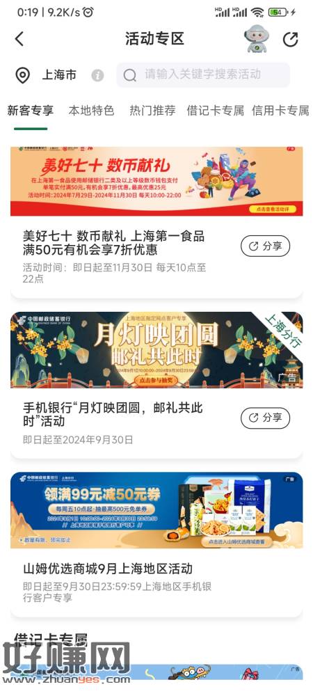 邮储大毛限上海,活动专区-月灯映团圆。貌似必中,一天抽一次,