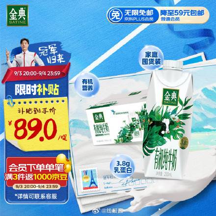 部分用户领2张劵,金典 有机梦幻盖 250mL*20