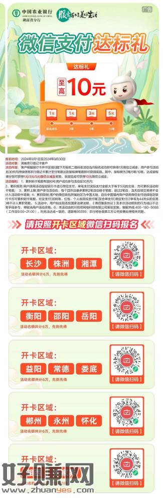 农行湖南月月刷,开三类不同地区不同微信报名拉满