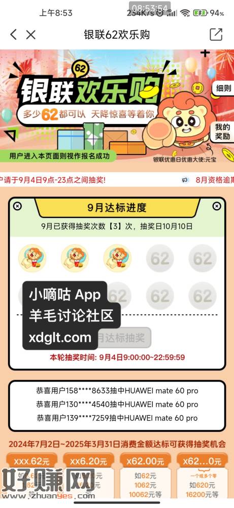 云闪付欢乐购9点抽奖