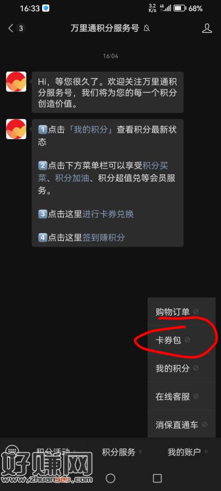 我来解答一下某些人为啥积分会退回去,你的没有和钱包绑定所以积分才会退回去,你可以公众号关注如图一所以点红圈的地方进行绑定,有可能出现假绑定那就要下个app点红圈地方进行绑定了