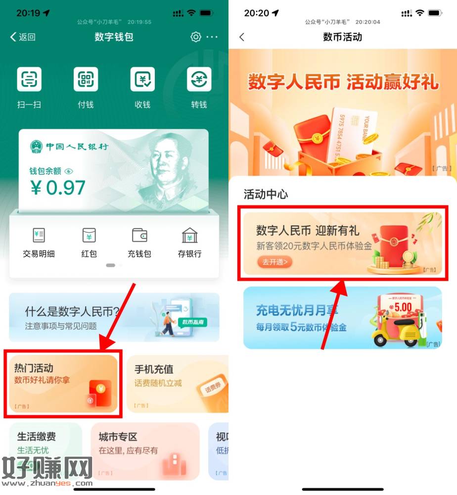 【农行数币新人领20亓消费红包】农行APP搜索“数字人民币”->热门活动->迎新有礼->新人可得20亓消费红包,话费货水电费都可以抵扣