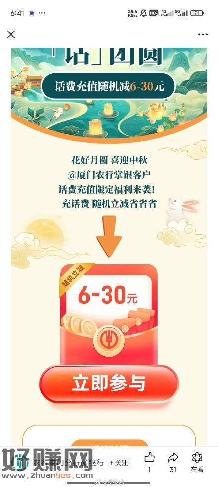 厦门农行话费活动