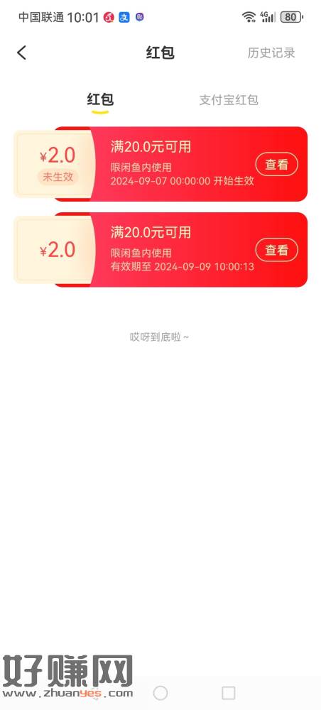闲鱼等级红包,记得要向闲鱼上交服务费每套出1张2元,要贡献20*0.6%=0.12