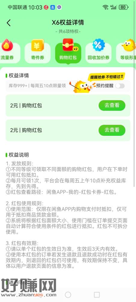闲鱼等级红包,记得要向闲鱼上交服务费每套出1张2元,要贡献2