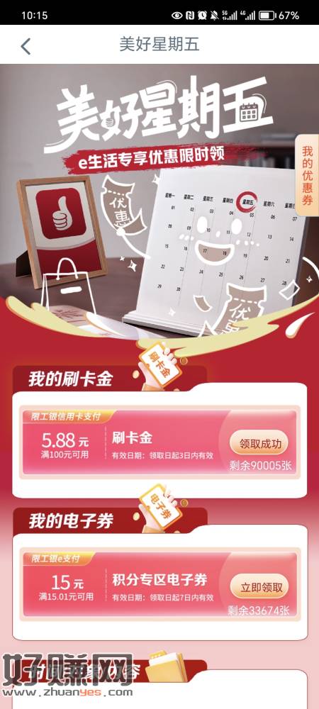 工行信用卡,工银e生活app,美好星期五,5.88刷卡金