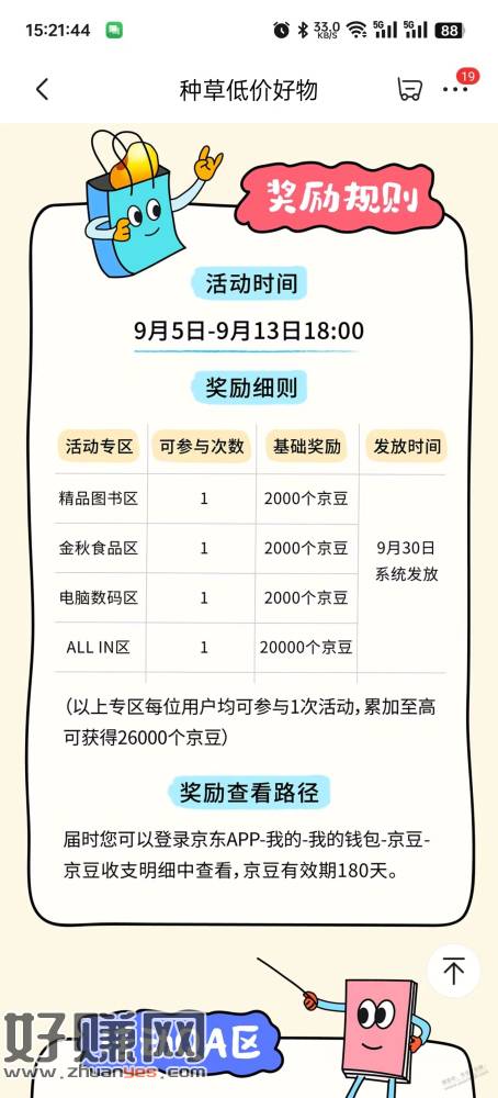 三个专区全做完可以领200块豆子 图书区最便宜的17块 食品区最便宜的51块 主要问题就是 电脑区 不清楚里边那个产品倒卖能少亏点