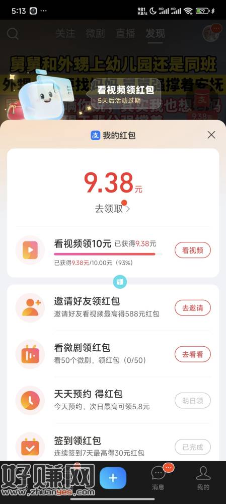 支付宝视频可以用阅读器弄,我两天拿10,不用手动滑