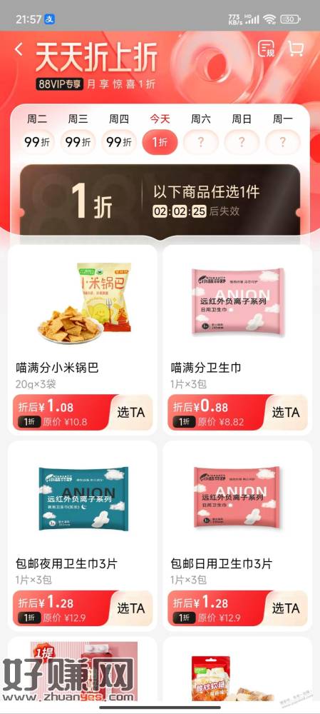 淘宝天猫超市搜财运旺翻咔抽猫卡 1-5元薅洽洽瓜子1斤