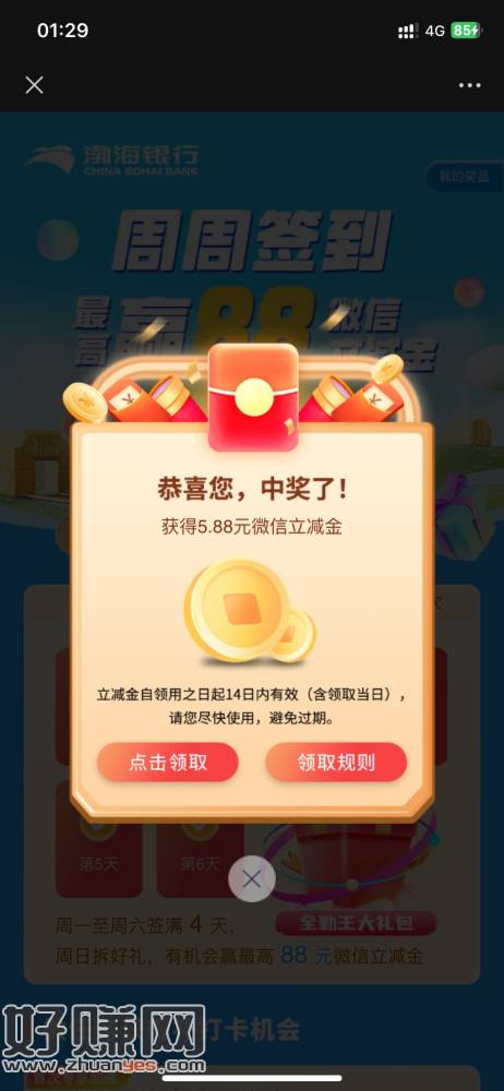 渤海签到还没领的试试有大5个号都是5.88
