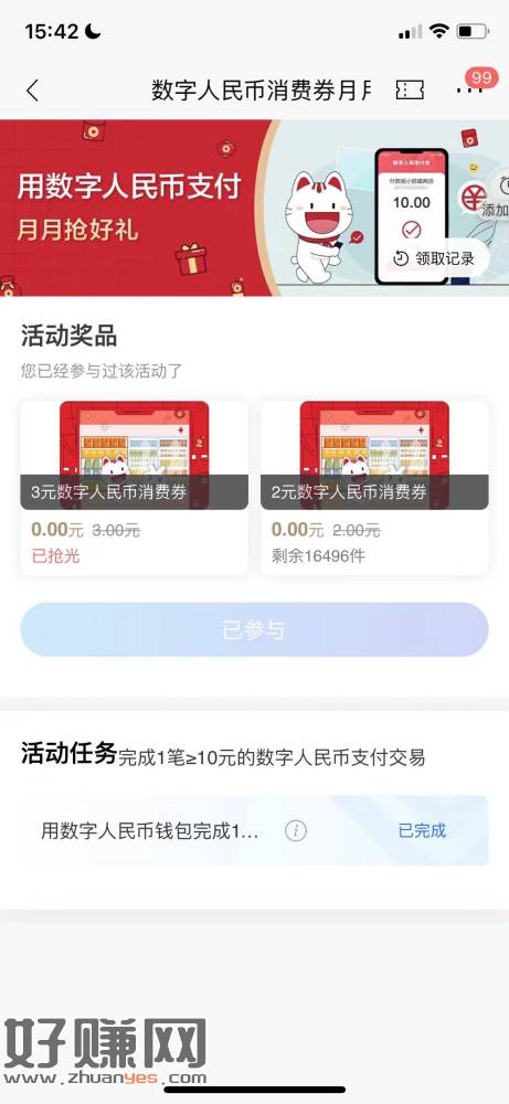 招商银行app 搜索 : 数字人民币活动 02的每月一次,03的是用数字人民币 招商付款超过5月的每天都可以参加一次