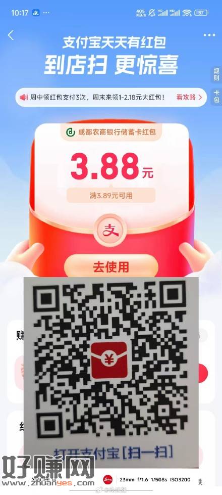 支付宝绑了农信卡的扫,刚中3.88