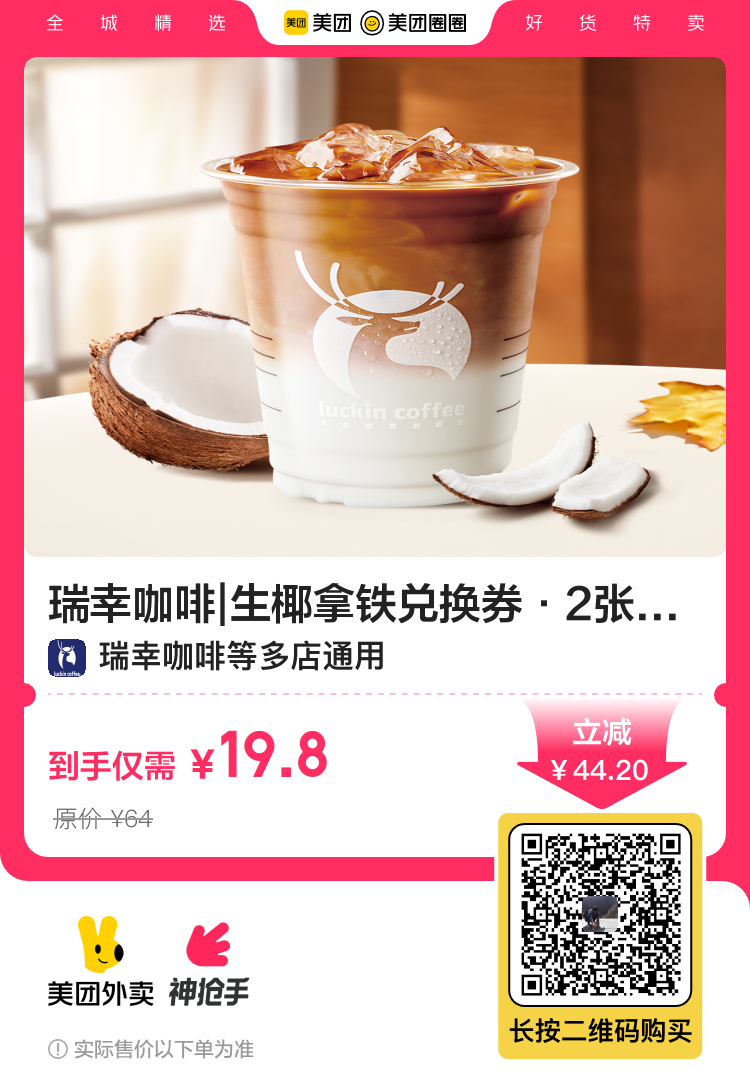都是19.8元2张,每周一/四/五免配送费,数量有限,卖完就没了