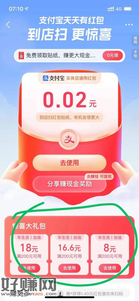 zfb扫朋友红包码,下面刮一刮,可以抽加油券