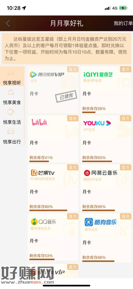 工商银行存款达标的快去领月卡 爱奇艺库存不多了 几分钟腾讯都