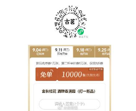 12点,古茗免单1w张,口令预计:桂花酒酿小丸紫